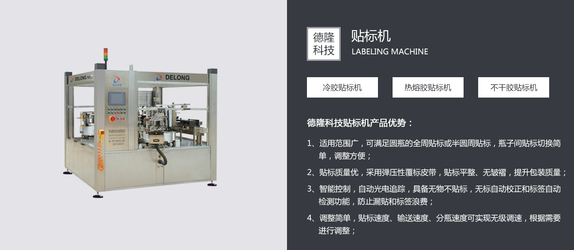 青島德隆自1995年創(chuàng)建以來,始終秉承創(chuàng)新與發(fā)展的優(yōu)良傳統(tǒng),依靠技術(shù)與服務(wù)贏得客戶的信賴與尊重。在貼標(biāo)機(jī)向?qū)W⒒⒍嘈袠I(yè)領(lǐng)域發(fā)展并成就了中國異型瓶貼標(biāo)市場的經(jīng)典之后,應(yīng)市場不斷變化的客戶需求,優(yōu)化產(chǎn)品結(jié)構(gòu),引進(jìn)吸收國內(nèi)外的流體包裝設(shè)備理念,在貼標(biāo)機(jī)專業(yè)化地位穩(wěn)固的前提下,逐步實(shí)現(xiàn)關(guān)聯(lián)產(chǎn)品的多元化。   目前,青島德隆已經(jīng)成為國內(nèi)能同時滿足圓瓶、方瓶、扁瓶、錐度瓶、球形瓶、定位瓶等瓶型的高、中、低速多功能冷(熱)膠貼標(biāo)領(lǐng)域的廠家。隨著碼/卸(瓶/罐)垛機(jī)、沖瓶機(jī)、灌裝擠(旋/壓)蓋機(jī)、全自動紙箱包箱設(shè)備、排序機(jī)、機(jī)器人碼/卸垛設(shè)備、激光噴碼機(jī)的運(yùn)行成功,一個真正的流體包裝設(shè)備方案解決專家已經(jīng)成熟。   青島德隆集團(tuán)的···......[查看詳情]