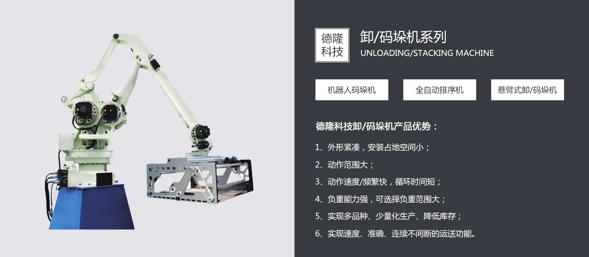 機(jī)器人碼垛機(jī) 懸臂式卸/碼垛機(jī) 接力式碼垛機(jī) 全自動排序機(jī) 全自動整層碼/卸瓶垛機(jī) 通過式全自動打包帶機(jī)